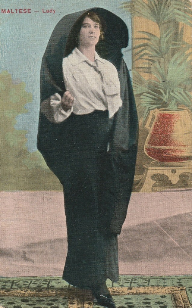 There are several legends to the origin of this traditional dress. It seems to have been widely wore by generations of Maltese women from 16th to 19th century especially when visiting churches. Foreigners who came to Malta were intrigued by this costume. It became one of the several things that represented Malta.