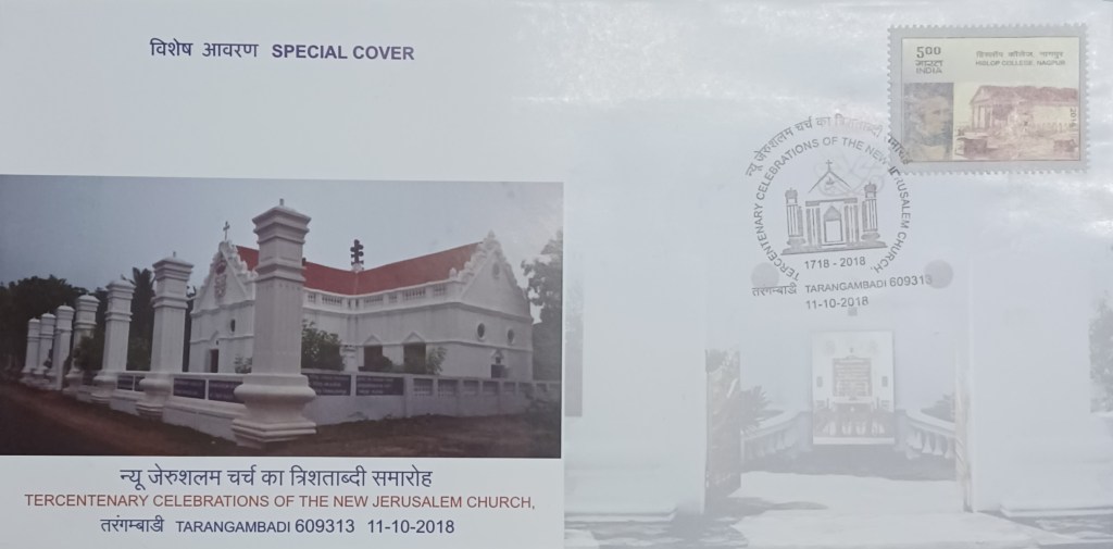 In 1718 he and his associates constructed a church which is still in use today. A special postal cover with a pictorial cancellation (postmark) was brought out on 11 Oct 2018 to commemorate the 300th anniversary of the church.