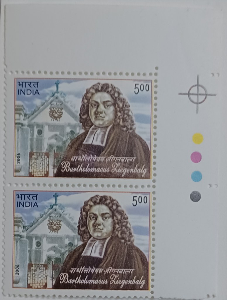In 1715, he published his translation of the New Testament into Tamil and in the next year brought a volume of Tamil grammar called, Grammatica Damulica. India Post issued a stamp on Ziegenbalg in 2006 to commemorate the 300th anniversary of the Tranquebar Lutheran Mission.