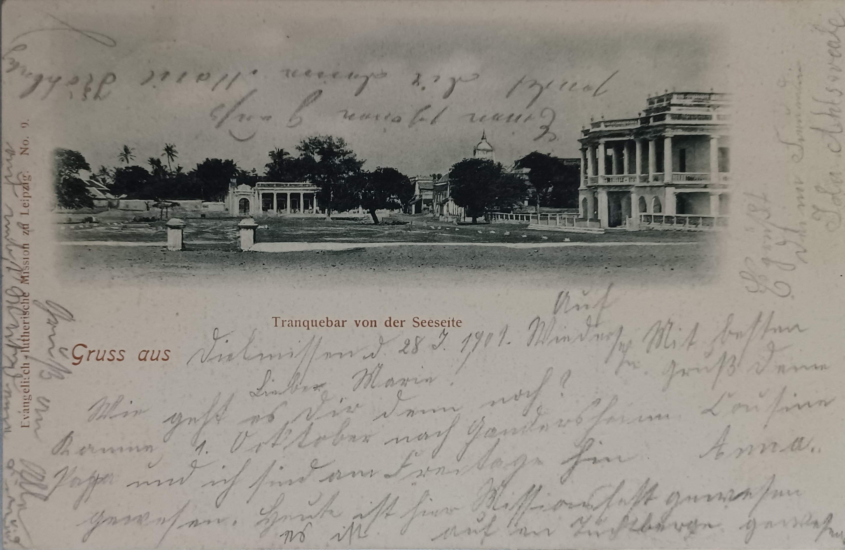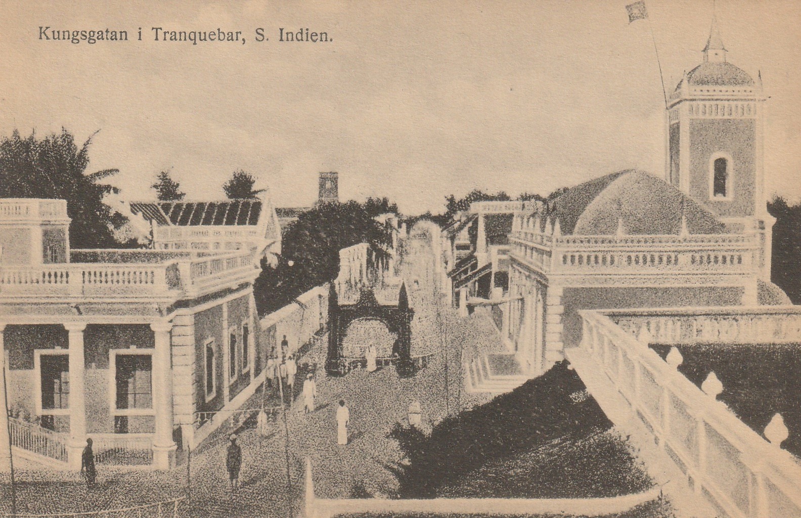 Here’s another vintage picture postcard showing the main thoroughfare of Tranquebar, published by the Church of Sweden’s mission board.